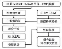 技术流程:PS-InSAR技术通过多步骤精准处理卫星影像,最终提取地表形变数据,核心处理流程如下: