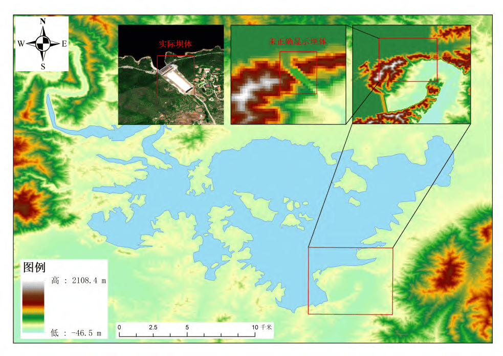 图4 Copernicus DEM湖水外泄示意图